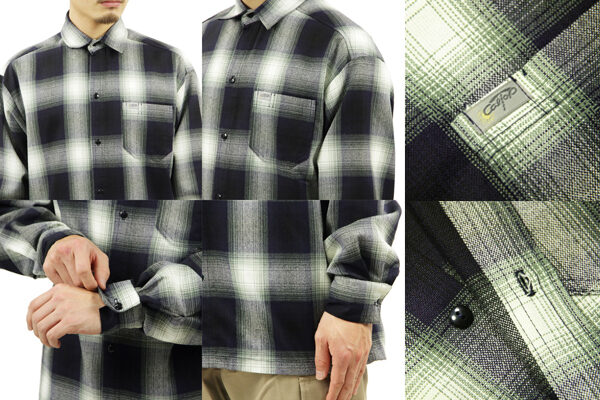 アメリカシャツブランド「CALTOP(キャルトップ)」のご紹介です。フラットボトムのボックスシャツで、左胸に六角形のパッチポケットが付属、襟元は台襟付きのシャツです。生地はシワや汚れに強いアクリルフランネルで、オーセンティックな雰囲気があるオンブレチェックです。西海岸ストリートの漂う一枚で、ディッキーズ、バンズ辺りとの相性良さは言うまでもありません。米国製ながらTシャツ並みのプライスで、デイリーユースに最適です。ワイドなシルエットになっておりますのでストリートスタイルがお好きな方にはとてもオススメのアイテムです。