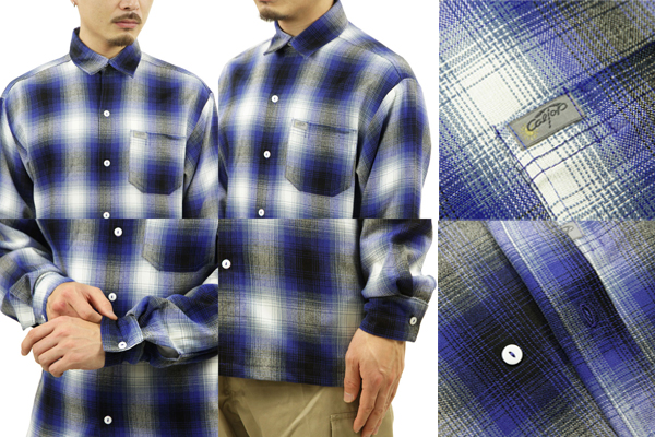 アメリカシャツブランド「CALTOP(キャルトップ)」のご紹介です。フラットボトムのボックスシャツで、左胸に六角形のパッチポケットが付属、襟元は台襟付きのシャツです。生地はシワや汚れに強いアクリルフランネルで、オーセンティックな雰囲気があるオンブレチェックです。西海岸ストリートの漂う一枚で、ディッキーズ、バンズ辺りとの相性良さは言うまでもありません。米国製ながらTシャツ並みのプライスで、デイリーユースに最適です。ワイドなシルエットになっておりますのでストリートスタイルがお好きな方にはとてもオススメのアイテムです。
