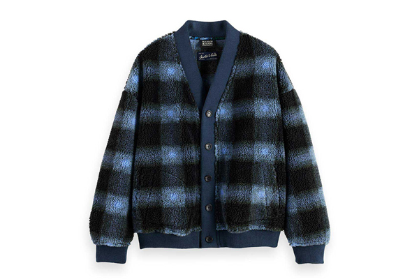 「SCOTCH&SODA(スコッチ&ソーダ)」から新作のフリースカーディガンのご紹介です。柔らかなボアフリース素材を使用した、季節感たっぷりのチェック柄カーディガンになります。ふんわりとした肌触りと適度なボリューム感が特徴で、羽織るだけで暖かさを感じられる1着です。ブルーを基調としたチェック柄は落ち着きの中に華やかさをプラスし、コーディネートの主役として活躍します。Vネックと前立て、袖口、裾にはリブがあることででシルエットを引き締め、ラフになりすぎず上品な印象に仕上げています。インナー使いからアウター代わりまで幅広く使える、秋冬の万能アイテムです。