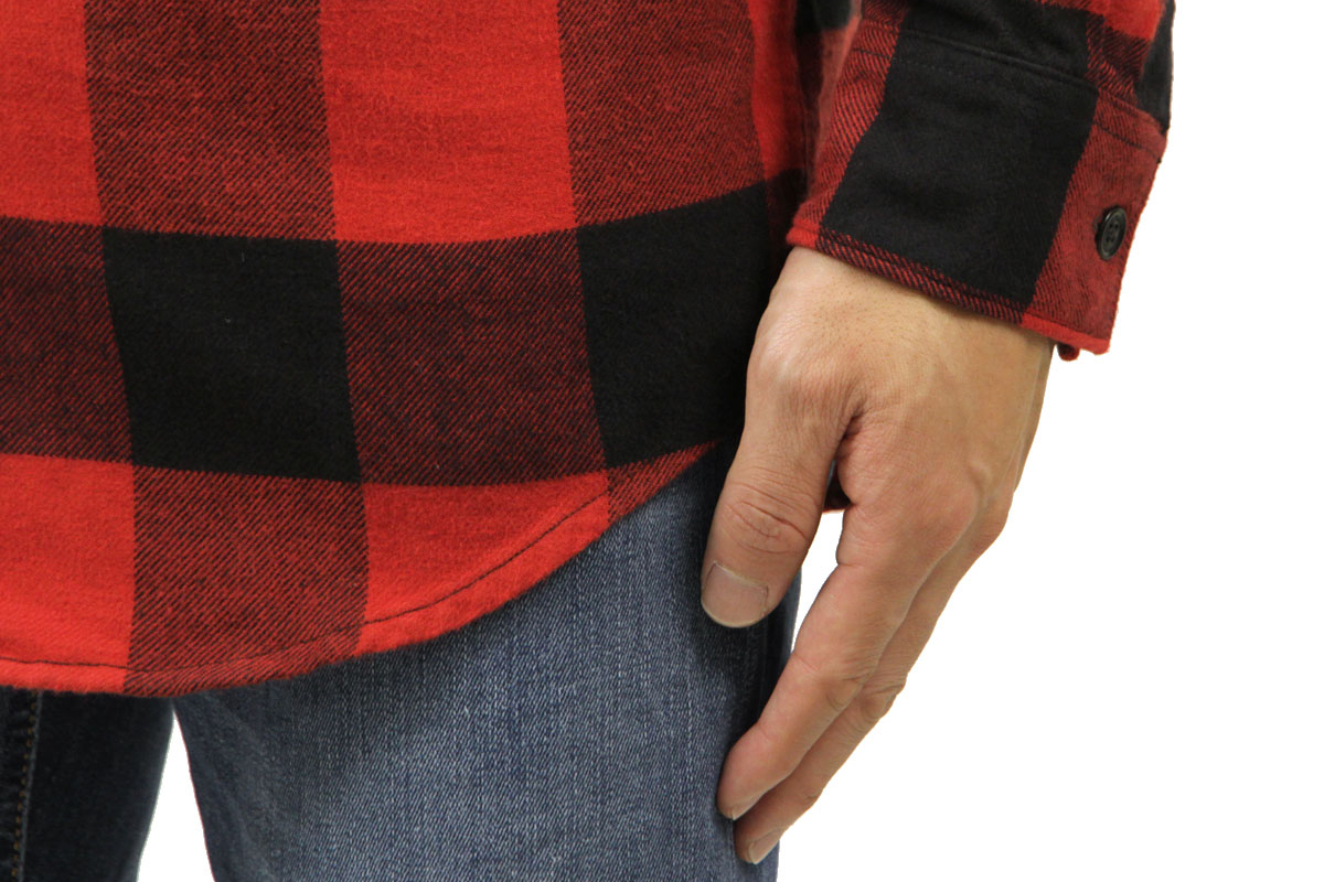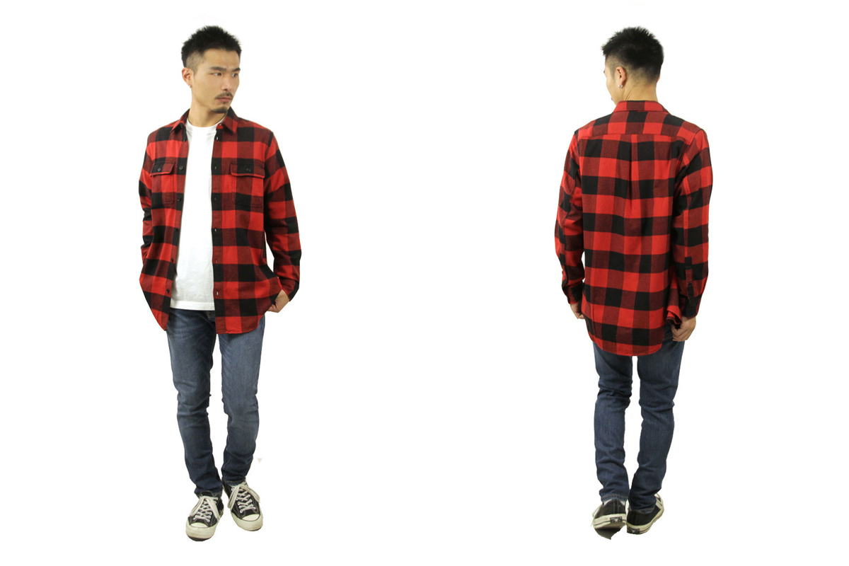NUDIE JEANSからバッファローチェックシャツのご紹介です。このシャツは、アメカジの王道であるバッファローチェック(赤×黒のブロックチェック)を採用しており、ブランドらしいサステナブルなこだわりが詰まった一着です。素材にはオーガニックコットン100%&フェアトレードコットンを使用。環境と生産者に配慮した素材選びが特徴です。生地感はソフトな肌触りのフランネルツイルで適度な厚みがあり、季節的にも長く着用できる質感です。シルエットはリラックスフィットで、少しゆとりのあるサイズ感なので羽織りとしても、アウターのインナーとしてもバランス良く着こなせます。