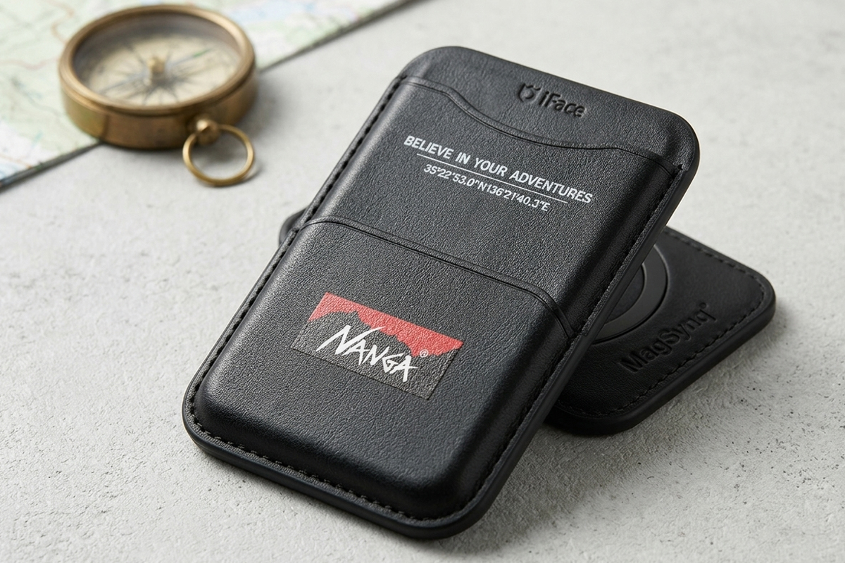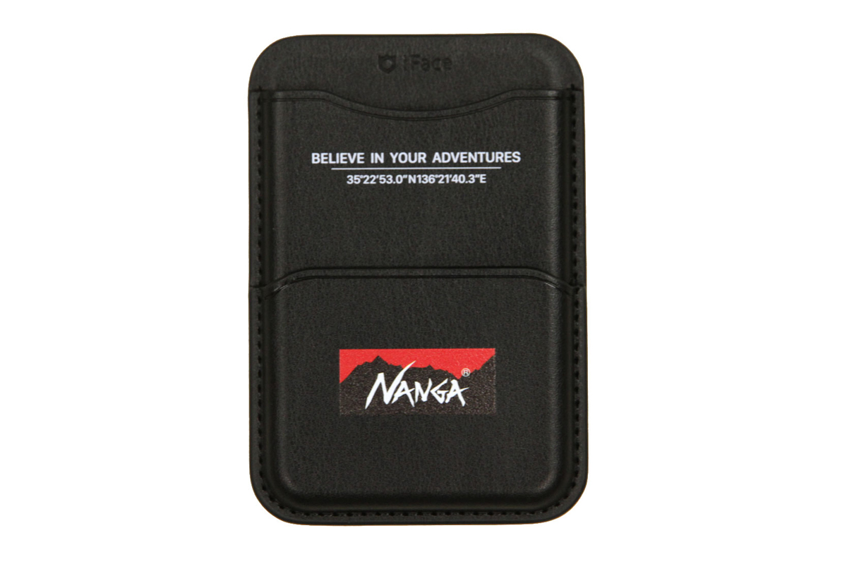 NANGAから「NANGA × iFace MagSynq カードウォレット」のご紹介です。日本が誇るダウンメーカー「NANGA(ナンガ)」と、スマホアクセサリーブランド「iFace(アイフェイス)」によるコラボレーションアイテムになります。MagSafe対応のスマートフォン背面に磁力でピタッと装着できる、利便性とデザイン性を兼ね備えたカードウォレットです。洗練されたコラボデザイン。フロントにはNANGAのアイコニックな「マウンテンロゴ」を配置。さらに、ナンガの原点である伊吹山の座標と「BELIEVE IN YOUR ADVENTURES」のメッセージが刻印されており、アウトドアスピリットを日常のデバイスで感じられる仕上がりです。MagSafe対応のスマートな操作性。またはMagSafe対応ケースの上から装着可能。財布を持ち歩かない「手ぶらスタイル」や、キャッシュレス派のメインウォレットとして最適です。