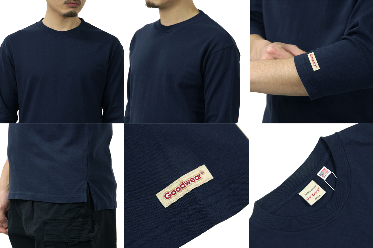 ■GOODWEAR USAコットン 7分袖 Tシャツ NAVY 2W7-15229 7.6オンスヘビーウエイトの天竺 レギュラーシルエット 4,290 円(税込)