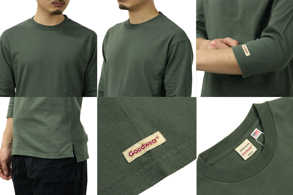 ■GOODWEAR USAコットン 7分袖 Tシャツ SMOKEY KHAKI 2W7-15229 7.6オンスヘビーウエイトの天竺 レギュラーシルエット 4,290 円(税込)