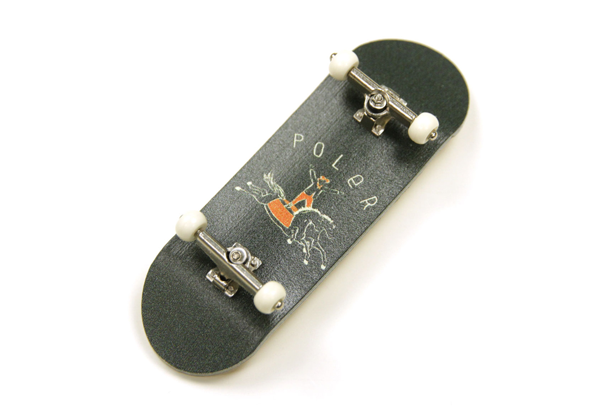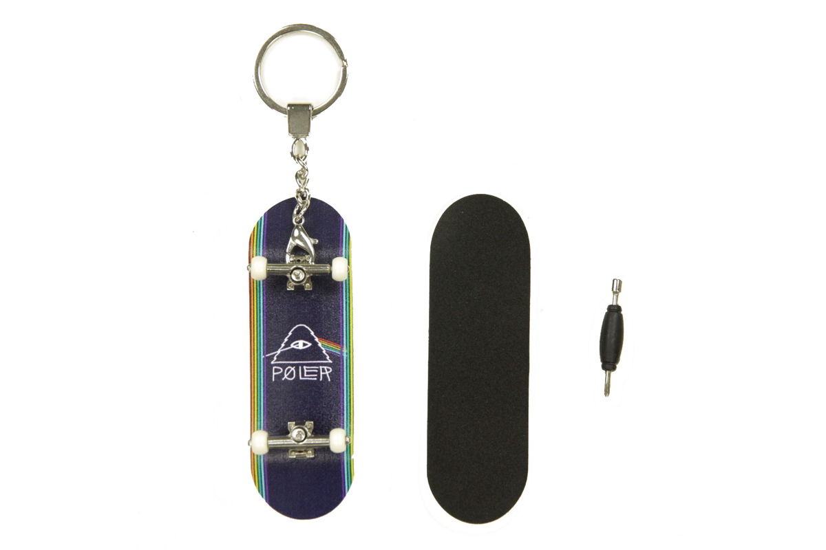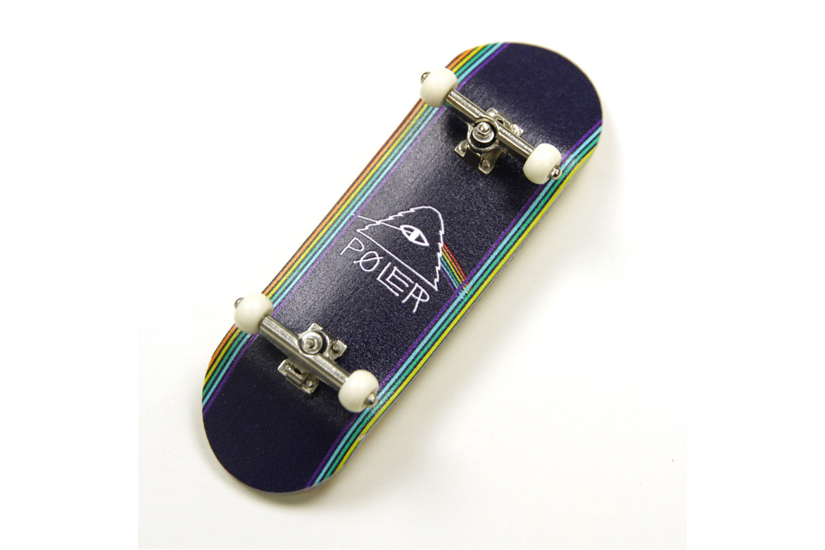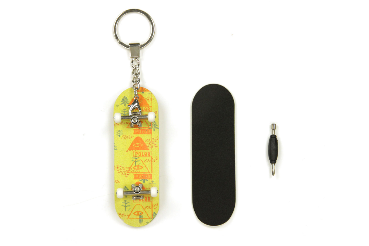 アウトドア×ストリートを融合させたブランドとして人気の「POLER(ポーラー)」からフィンガースケートボードキーチェーンのご紹介です。板部分にはPOLERの人気ロゴをプリントしたユニークなフィンガースケート型キーチェーンになります。リアルなスケートボードのディテールをミニサイズで再現した、遊び心あふれるアイテムです。デッキにはグリップテープを貼り付け、裏面にはブランドロゴ入りのグラフィックを配置。さらにトラックやウィールも細部までしっかり作り込まれており、実際に指でトリックを楽しめる本格仕様となっています。キーチェーンを取り付ければキーホルダーとしてバッグやベルトループに装着可能です。スケートカルチャーやストリートスタイルが好きな方にはもちろん、ちょっとした遊び心をプラスしたい方にもおすすめです。